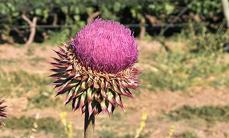 Nuestra finca biodinámica, situada al sur del río Mendoza y con el Cordón del Plata al oeste, abarca unas ochenta hectáreas de viñedos integrados a una rica biodiversidad de flora y fauna; a una altura de 960 msnm; con un amable clima soleado, seco y de una favorable amplitud térmica, cuenta con un reservorio de agua, para riego por goteo, que proviene de la montaña en el que conviven patos, garzas, peces y ranas; dos hectáreas de huerta comunitaria, olivares, frutales y animales de la granja como ovejas, cabras, gallinas y cerdos. Así mismo, en los últimos años hemos sembrado parcelas con diversas pasturas tales como alfalfa, vicia, centeno, trigo, etc. en parte destinadas a la alimentación de los animales y para nutrientes del compost; por otro lado entre hileras de vides emerge un jardín de plantas aromáticas y homeopáticas que sirven para nuestros preparados biodinámicos.